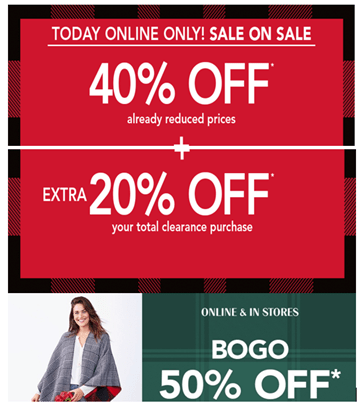 Plus all tops, jeans, and boots are BOGO 50% off online and in store.